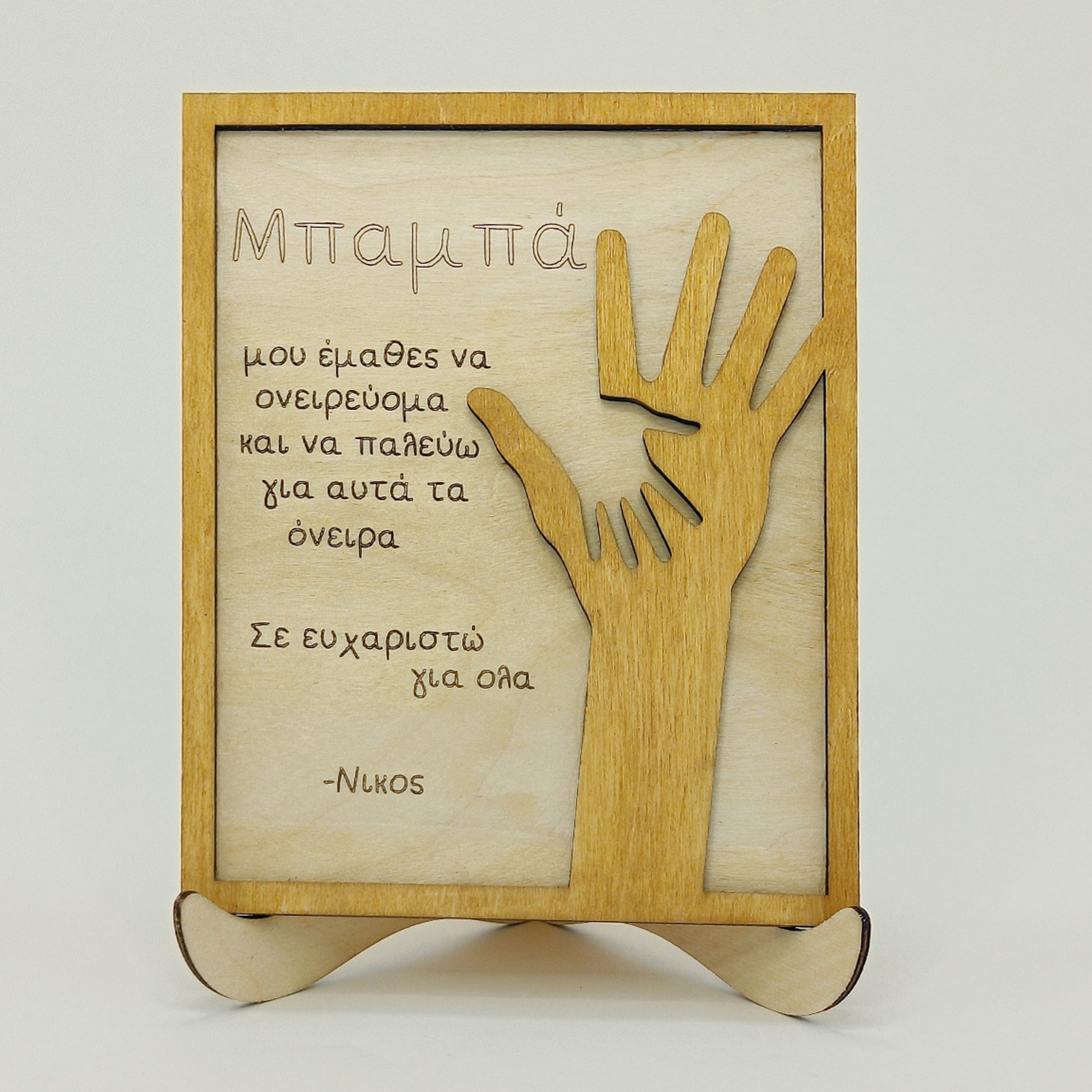 Ξύλινο Κάδρο "Χέρι με Χέρι" με Ευχαριστήριο Μήνυμα για τον Μπαμπ